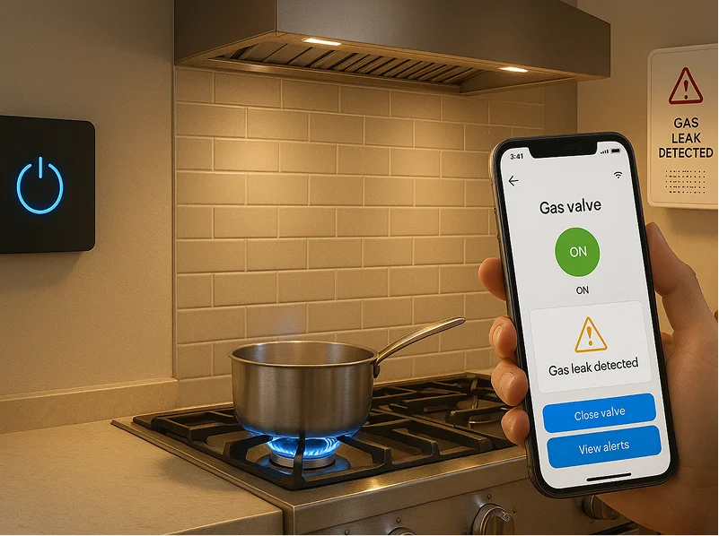 Ensure peace of mind and safety in your kitchen with an automated gas valve system. Control the gas flow remotely, receive instant alerts if leaks are detected, and automatically shut off the supply to prevent hazards — keeping your home and loved ones protected.